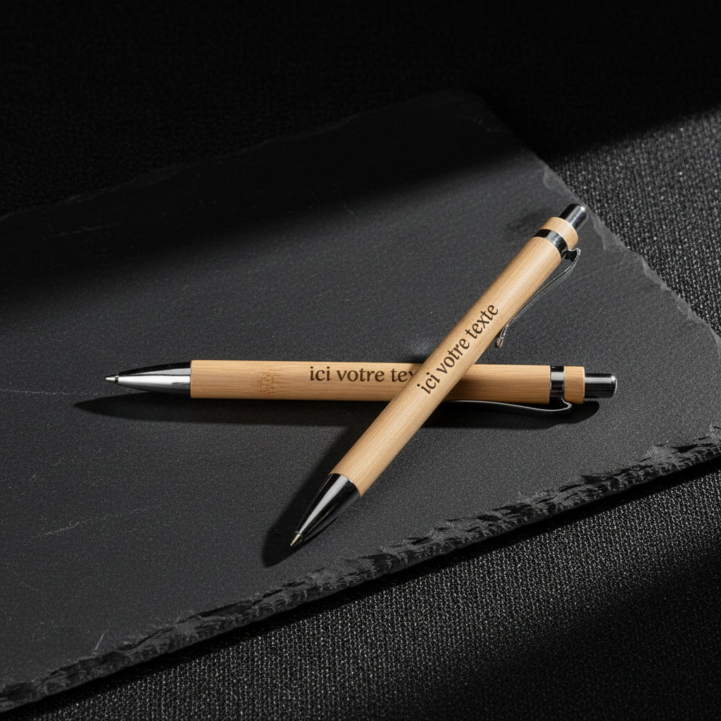 Stylos en bambou gravés au laser : élégants, écologiques et personnalisables.